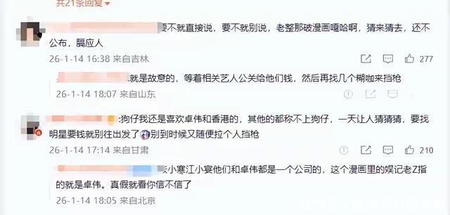 娱乐圈又炸锅了!就在1月14日,知名娱记“瓜田寒姐”用一组漫画扔出了一颗重磅炸弹,直指一位95后顶流小生私生活极其混乱,瞬间点燃了全网吃瓜群众的热情。这瓜保熟吗? 细看之下才发现,爆料全程用代号说话,什么“科班出身”“大佬扶持”“与国民闺女同居”“综艺捆绑反差萌女神”,甚至还有“猎艳粉丝”的惊人指控,信息量巨大却偏偏不点真名,搞得网友们一头雾水,纷纷化身侦探开始了“全民猜人名”大赛。 这位被爆料的男星,据描述可是“资源逆天”。说是科班出身,入行后就得到多位“男大佬和女大佬”的倾力扶持,资源好到飞起,迅速跻身顶流之列。 但这成名之后的操作可就有点迷了,直接被指不爱惜羽毛,把娱乐圈当成了自己的“猎艳场”。 先是和一位有着“国民闺女”称号的小花A因戏生情,甚至发展到同居阶段,还被好友撞见过。紧接着,参加综艺时又和一位“反差萌女神”小B频繁互动,大炒CP。 这还不算完,同公司的95后小花C也疑似与他关系亲密,更有一位“混血年上姐姐”D牵扯其中,最后甚至连素人粉丝都被爆成为其“猎艳目标”,真是让人大跌眼镜。 这么劲爆却模糊的指控,可把网友忙坏了。大家拿着放大镜对照漫画里的标签,把符合条件的95后小生筛了个遍。 首当其冲被怀疑的是王安宇,因为他和中国传媒大学出身(虽非表演科班但也被广泛讨论),近期与关晓彤(“国民闺女”的典型代表)有合作剧集,在综艺《现在就出发》中又与李雪琴(反差萌形象)互动频频,多个标签似乎都能对上号。 此外,张凌赫、吴磊、王鹤棣、陈星旭等一众有热度、有作品的95后小生也纷纷被卷入漩涡,只因他们在不同程度上符合“顶流”、“科班”(或广为人知)、“与某位童星出身女星合作过”等某个或某几个特征。 然而,这波爆料也引发了巨大争议。最大的疑点就在于“毫无实锤”! 全程只见漫画不见一张真实的照片或聊天记录,被网友嘲讽为“预告式引流”。粉丝们更是火大,纷纷站出来为自己偶像澄清。 例如,有粉丝指出王安宇并非表演科班出身(中国传媒大学播音系),与爆料中的“科班”标签存在矛盾;而且关晓彤近期新剧的实际搭档是李昀锐,与王安宇并无交集,质疑爆料的准确性。 更有细心网友发现,这次爆料的时间点非常微妙,恰好临近《骄阳似我》《双轨》等剧的春节档宣传期,不禁让人怀疑:“这怕不是资本方为新剧炒热度吧?” 这场风波背后,折射出的是内娱“人设经济”的脆弱和炒作手法的套路化。明星们靠着精心打造的“单身”“专注”人设吸引粉丝,而一些营销号则深谙用模糊爆料博取流量的之道。 他们抛出一个劲爆却难以证伪的故事,利用网友的猎奇心理和解读欲望,轻松就能收割大量关注和讨论。 这种“猜谜式爆料”成本极低,即使最后被证明是子虚乌有,爆料者也无需承担任何责任,但被无辜卷入的艺人其名誉和形象已经受损,王安宇就因为这次事件无端被绑上热搜,甚至被传播恶毒的健康谣言。 这让人不禁想起之前张小寒等狗仔的各种漫画操作,套路何其相似。 说到底,在真相水落石出之前,保持理性至关重要。如果爆料属实,公众当然有权批评艺人的失德行为;但如果纯属捏造,那我们就需要警惕谣言成为被利用的工具。 对于这种只有情节没有实据的“瓜”,不妨让子弹再飞一会儿。毕竟,真正的“吃瓜”乐趣在于了解真相,而不是被当成流量游戏中的一枚棋子。 各位网友,你们觉得这次爆料有几分真?又是如何看待这种漫画爆料的模式呢?